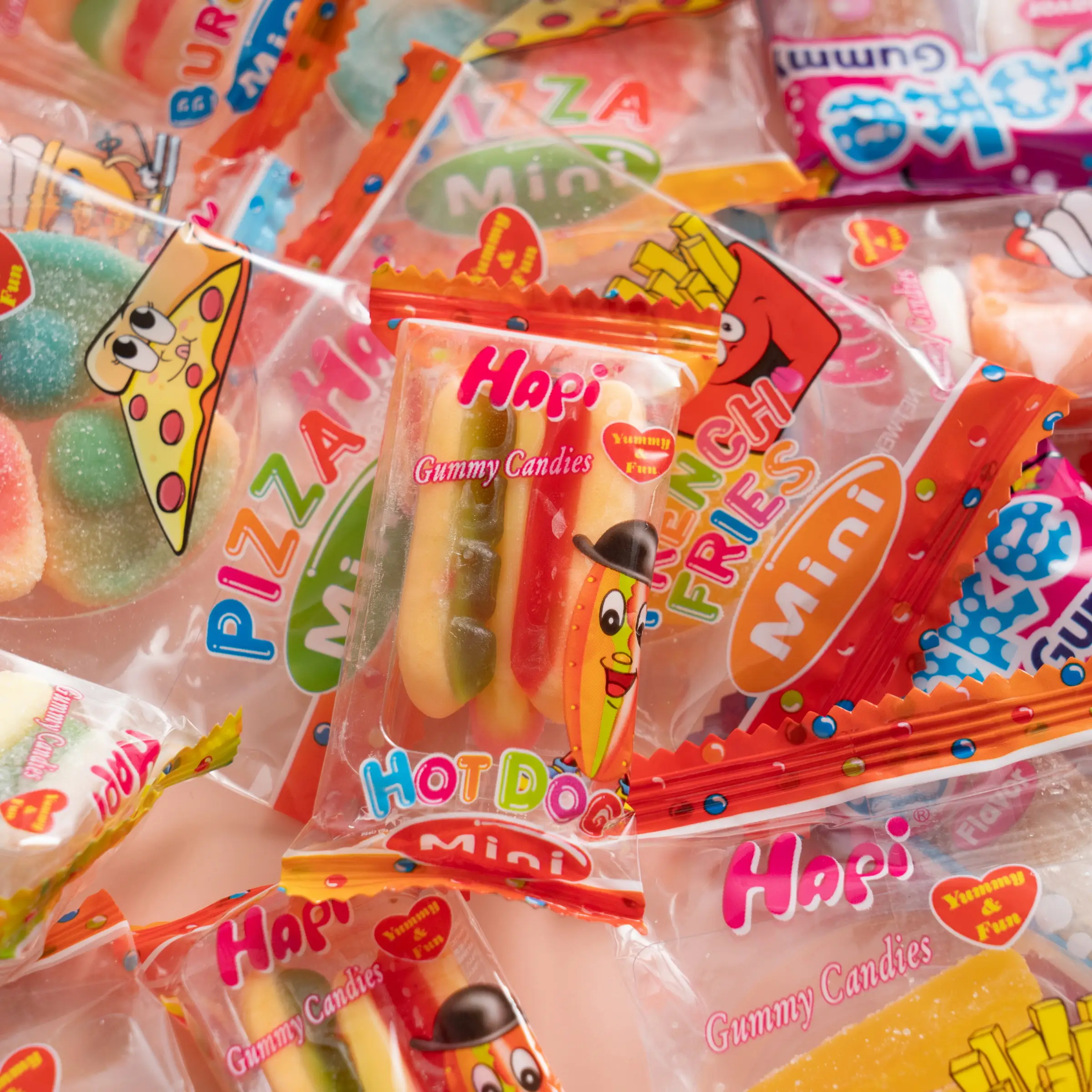 Our assorted gummy candy offers an exciting variety of flavors, all packed into fun, fast-food-themed shapes. From gummy hot dogs to burgers and pizza slices, these candies are designed to remind you of your favorite snacks, but in a chewy, fruity form. Each gummy piece is bursting with juicy fruit flavors, making it the perfect treat to indulge in during any occasion. HAPI knows that the experience of candy should be as playful as it is tasty, and our team ensures every bite of these gummies is filled with the sweetness you crave. Whether you’re a child or an adult, there’s a nostalgic joy in enjoying these colorful creations.